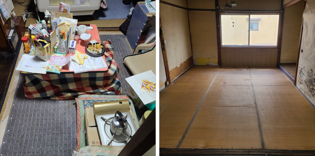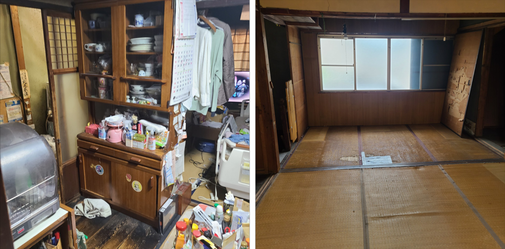一軒家のお宅では、生活感がまだ残っておりほとんど手つかずの状態からのスタートです。